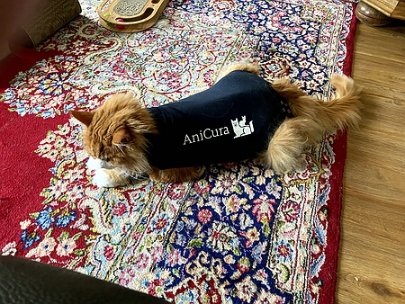 Endlich durfte ich wieder nach Hause. Die Mädels fauchen mich an und lachen mich wegen meinem neuen Fell aus. Essen mag ich nicht. Ich werde alle 2 Stunden über eine Spritze ins Maul gezwungen. Pieseln traue ich mich, aber das Andere nicht. Nachts muss ich mit ins Schlafzimmer. Dort steht ein Klo nur für mich. Das wird dann Morgens von den Zweibeinern inspiziert. Die haben sich noch nie so über meine Kacke gefreut.
