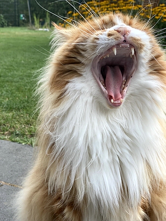 Endlich durfte ich wieder nach Hause. Die Mädels fauchen mich an und lachen mich wegen meinem neuen Fell aus. Essen mag ich nicht. Ich werde alle 2 Stunden über eine Spritze ins Maul gezwungen. Pieseln traue ich mich, aber das Andere nicht. Nachts muss ich mit ins Schlafzimmer. Dort steht ein Klo nur für mich. Das wird dann Morgens von den Zweibeinern inspiziert. Die haben sich noch nie so über meine Kacke gefreut.