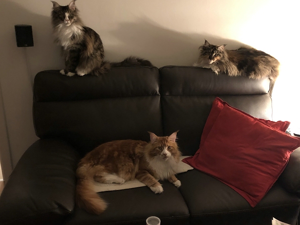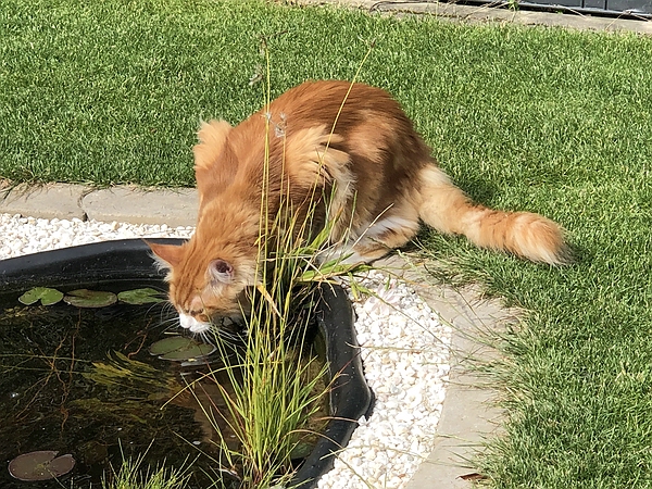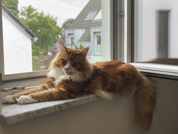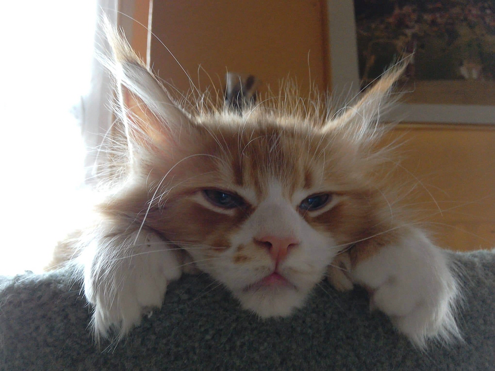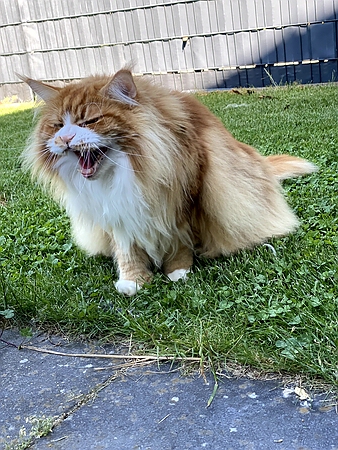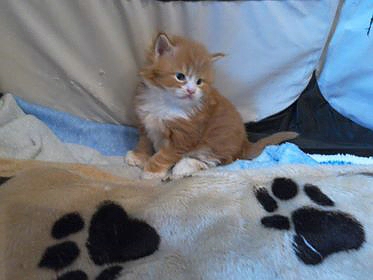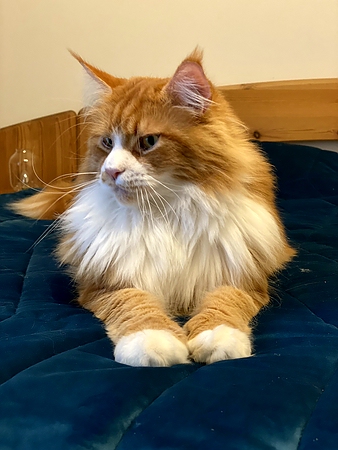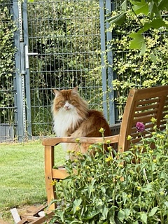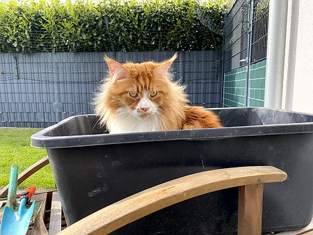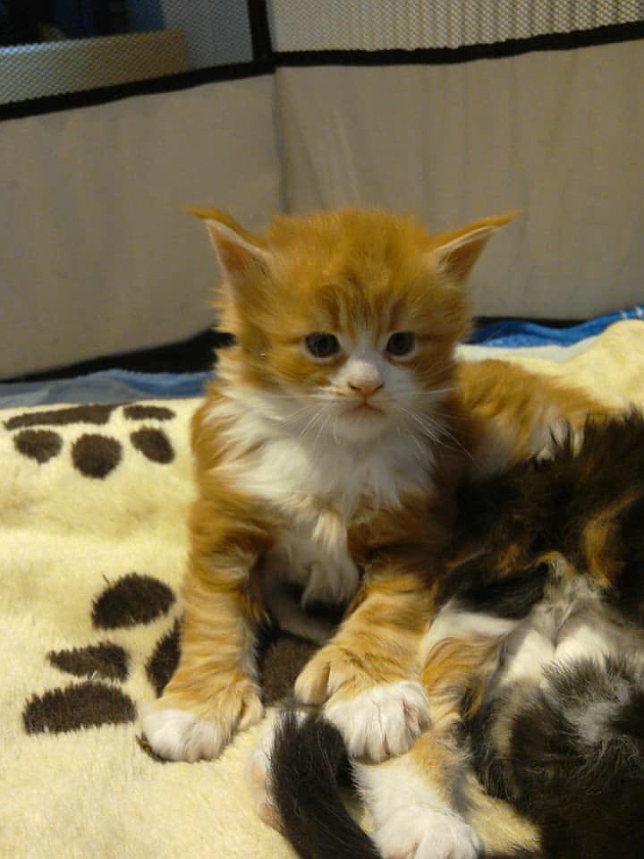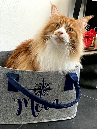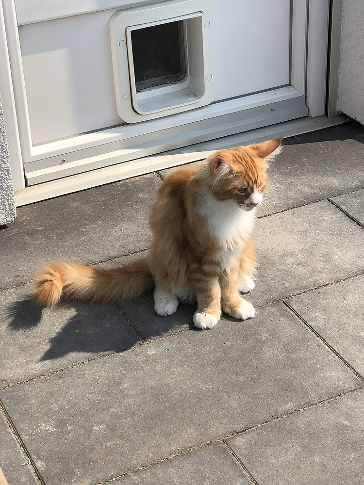 Bei meiner Geburt wog ich 165g. Mittlerweile wiege ich über 8 kg. Ich will ja mal ein stattlicher Kater werden. Immerhin muss ich mich gegen 2 Schwestern behaupten. Ich bin ein Poly in red classic white.