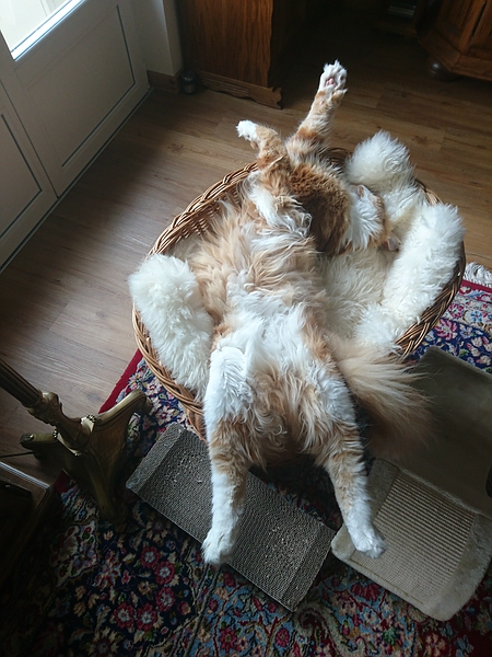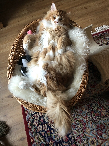 Auf meinen Erkundungsausflügen bin ich auf den Deckel vom Wäschekorb gesprungen. Und schwupp die wupp hat sich der Deckel gedreht und ich lag in der Wäsche. Und der Deckel natürlich wieder oben auf dem Korb. Meine beiden Schwestern haben zwar immer am Korb gekratzt, aber mich auch nicht befreien können. Wie gut das Mama Sabine in der Nacht nochmal nach allen Fellkindern geschaut hat. Pepper und Patty haben ihr dann gezeigt wo ich stecke. Man hab ich jetzt Hunger.