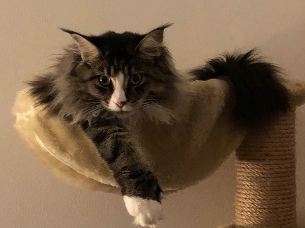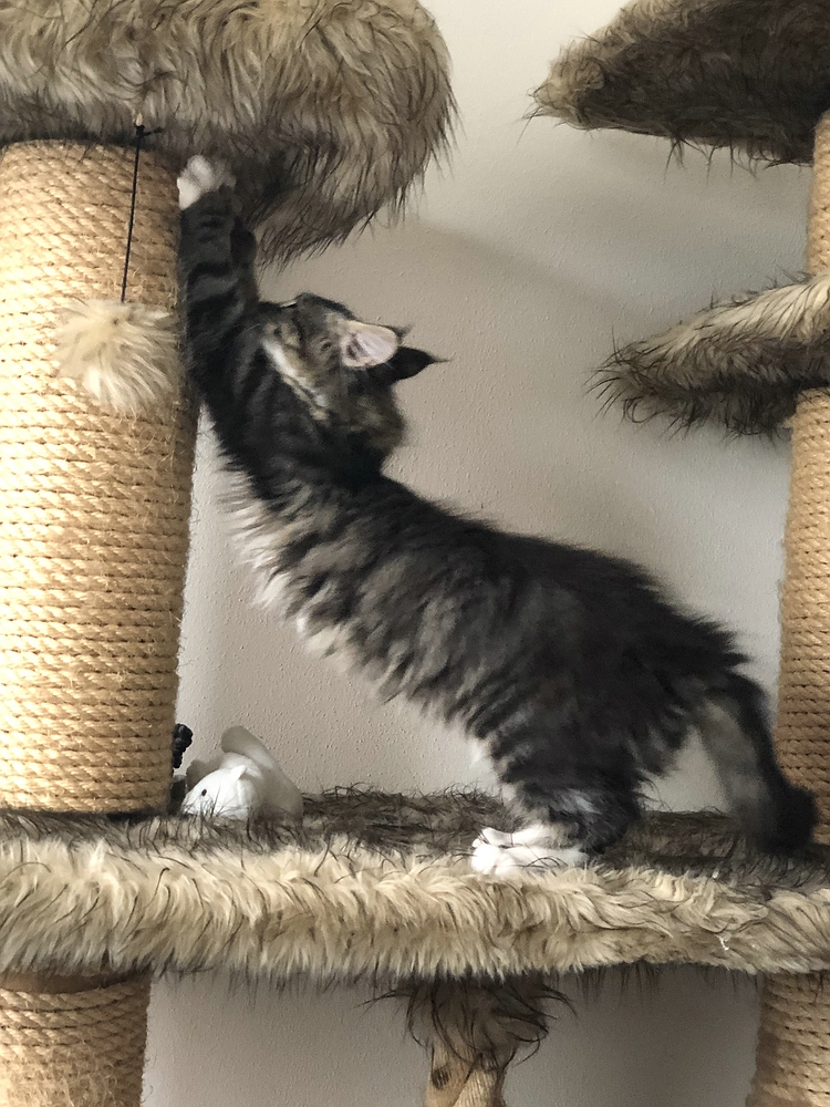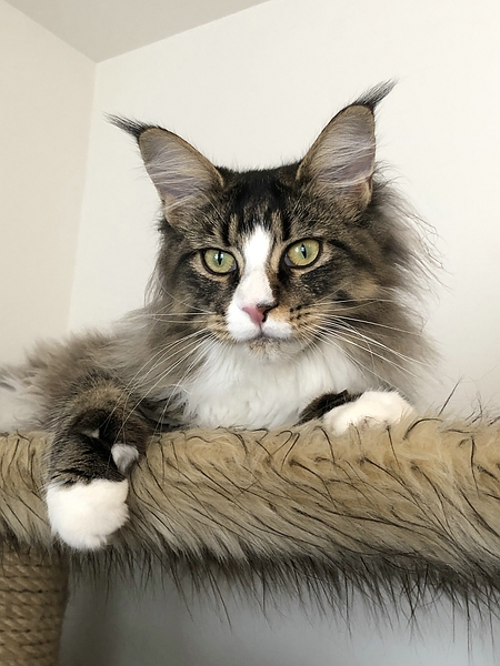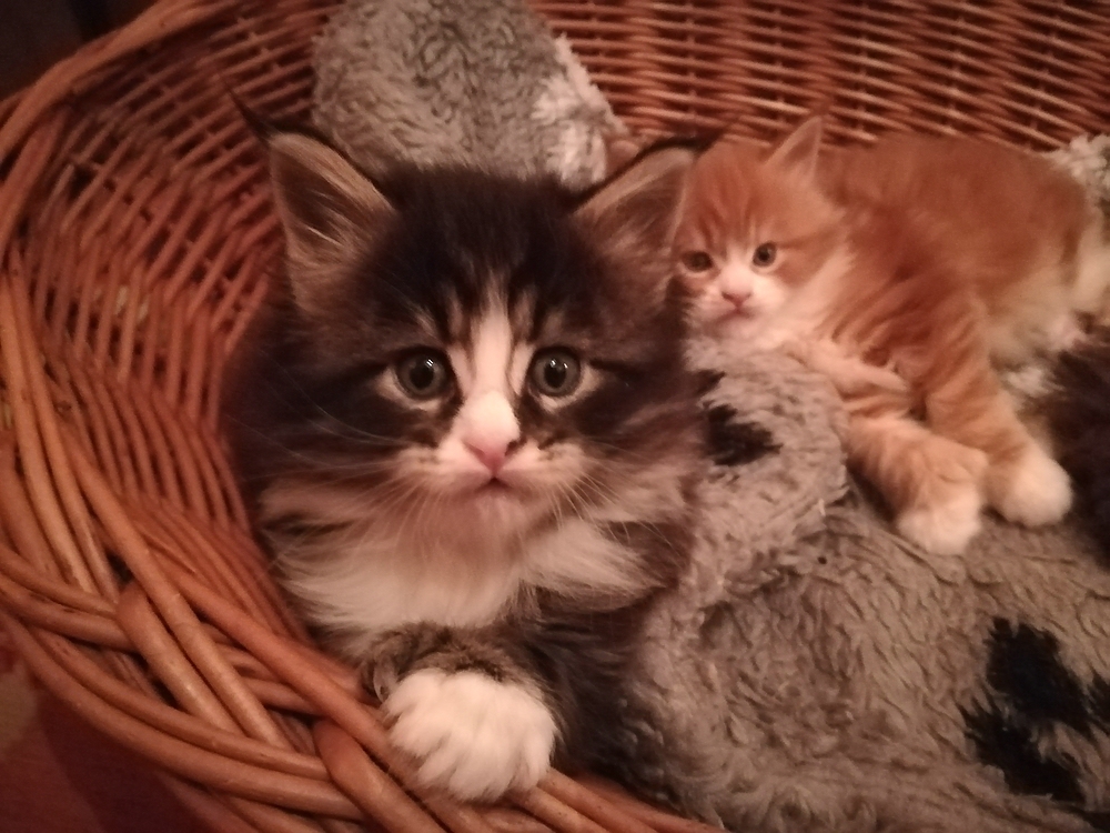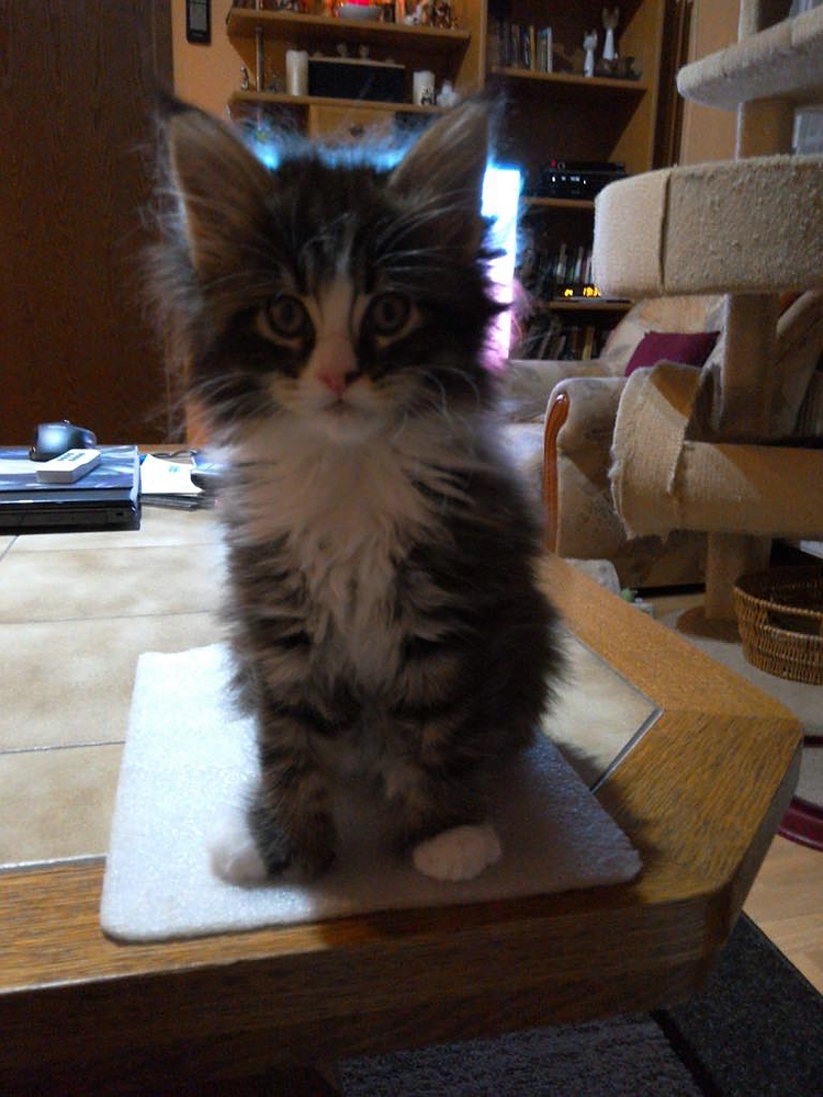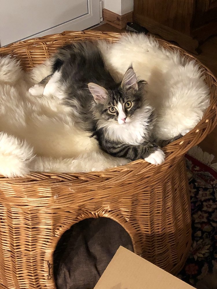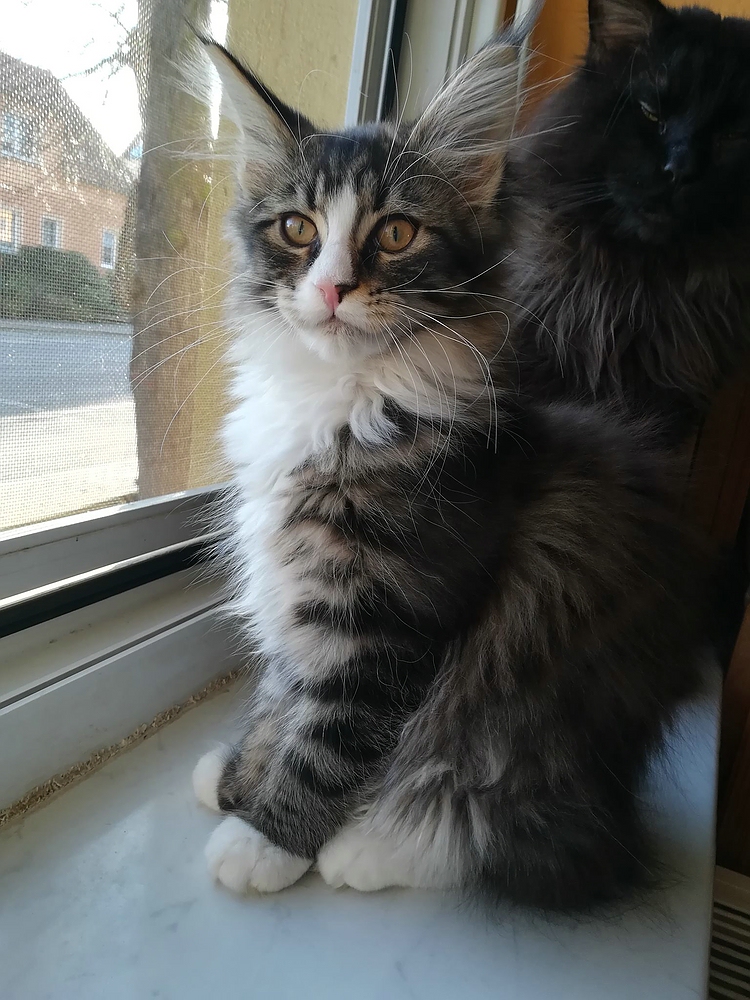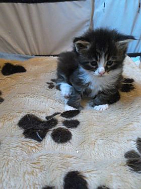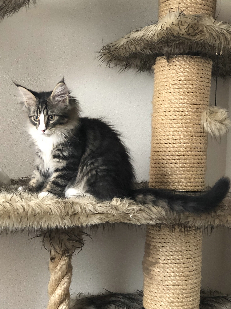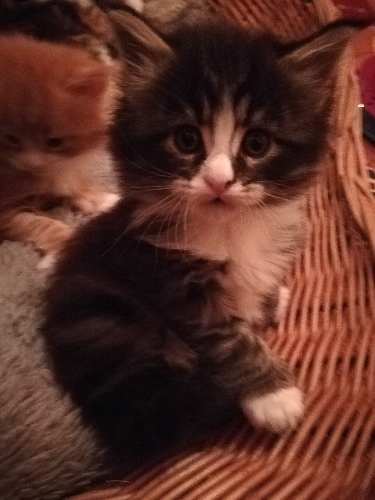 Ich heisse Peppermint Patty und bin ein Polymädchen in black tabby classic white. Meine neuen Sklaven sagen ich hätte Allradantrieb, da ich an allen Füßen mehrzehig bin. Ich bin ein kleiner Floh mit Schalk im Nacken. Überall die Erste, die alles erkundet und die Geschwister zum Spielen aufmuntert.