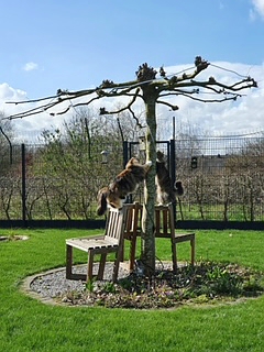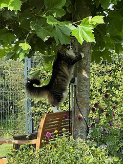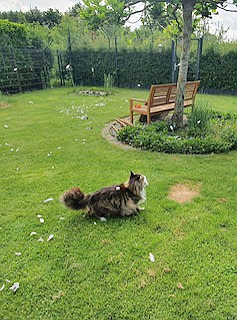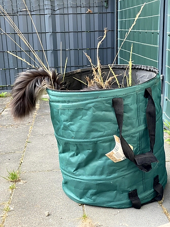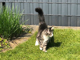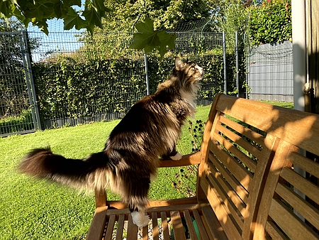 Im Garten mutiere ich zum Katta, mein Schwanz geht hoch und ist mega puschelig. Ich versuche alles was fliegt zu fangen.