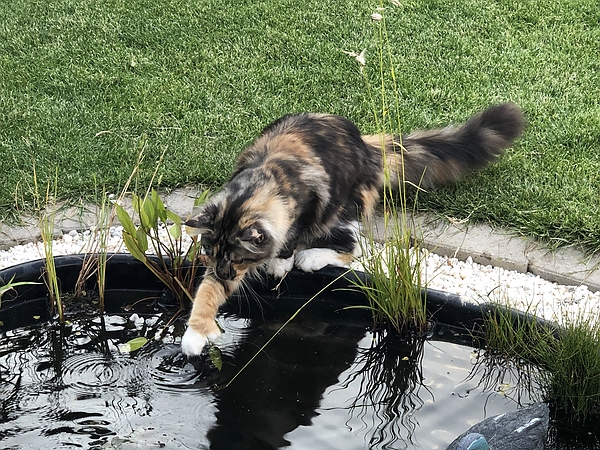 Die Fische freuen sich bestimmt über die schönen Pflanzen, um die sie jetzt herum schwimmen können. Und mein Dosenöffner freut sich ganz besonders. Der holt mir die immer wieder aus dem Teich raus.