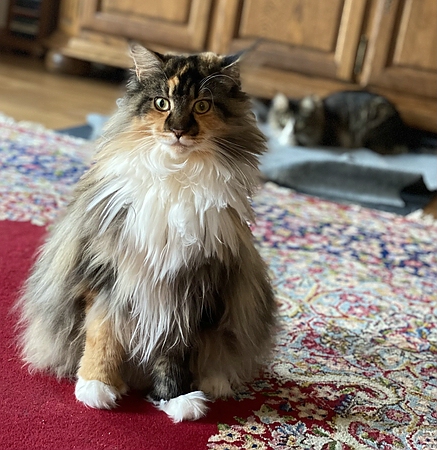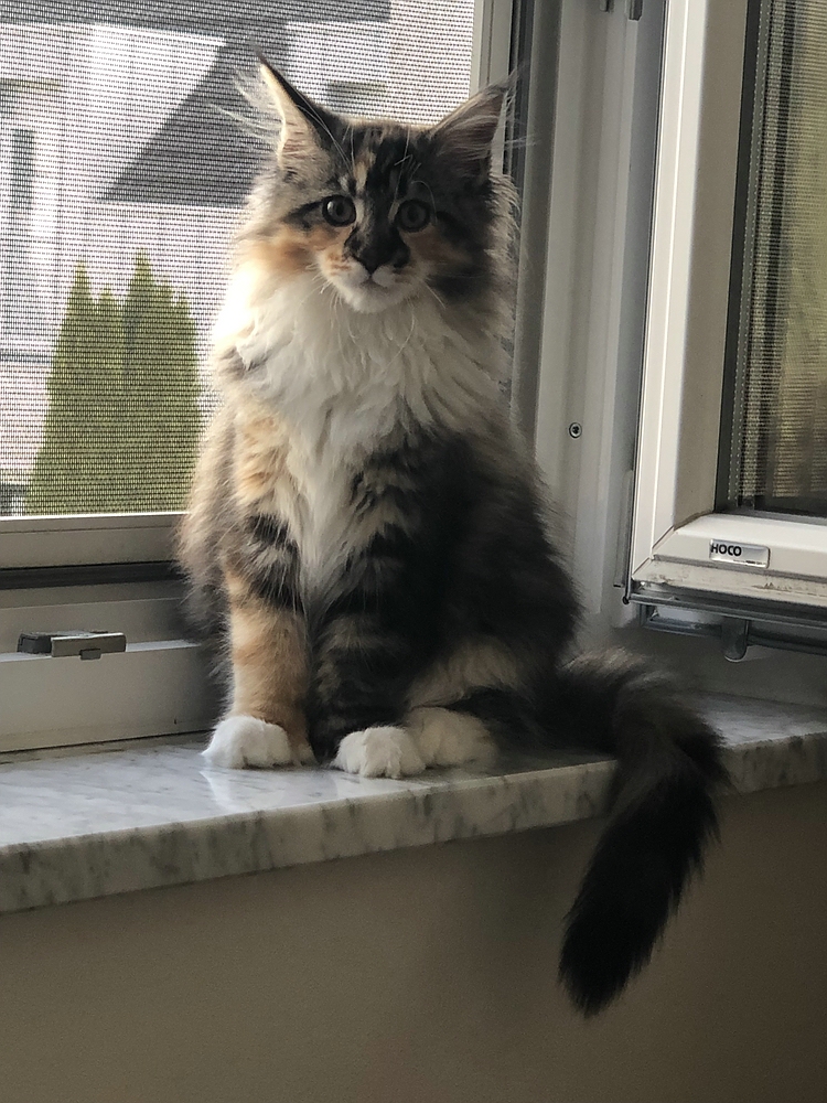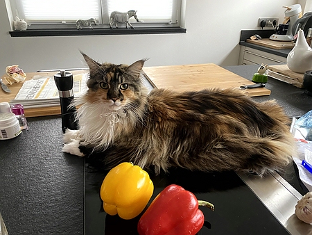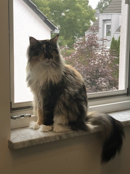 Meine Namensvetterin ist die Freundin von Iron Man. Ich bin ein Cooniemädchen in red torbie classic white. Meine Züchterin meint ich hätte Rosinen im Kopf und Hummeln im Hintern. Ich weiss auch nicht wie die darauf kommt......