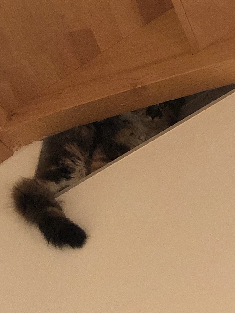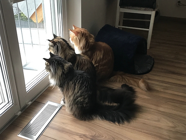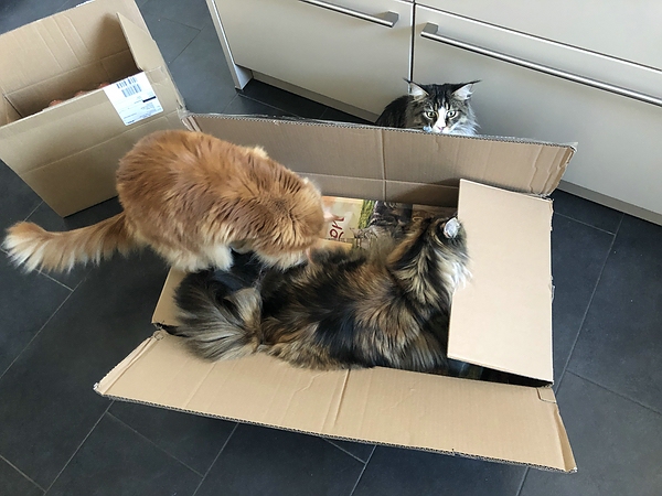 Am 04.03.2019 bin ich nun bei meinen neuen Sklaven angekommen. Ich habe direkt mal die Treppe erkundet und Baumängel aufgedeckt. Mein neuer Lieblingsplatz ist der Sofarücken.