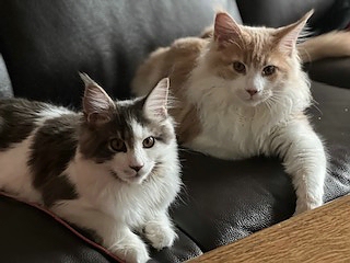 Auf einer Homepage einer Cooniezucht haben unsere neuen Dosis mal gelesen, dass Cooniemägen wie Dimensionstore wäre. Pfffft, der/die das geschrieben hat kannte uns noch nicht. Unsere Mägen sind wie schwarze Löcher. Wir inhalieren alles in Null komma nix. Wir haben immer Hunger. Selbst Peter zieht bei unserer Geschwindigkeit in der wir unser Essen verputzen den Kürzeren.
