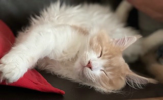 Ich mag meinen Dosenöffner. Nachmittags halten wir immer ein Nickerchen auf dem Sofa.