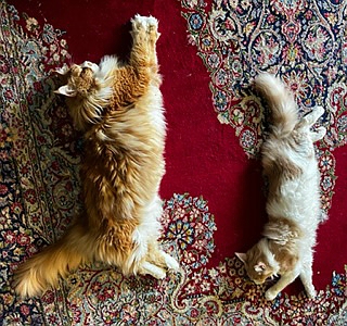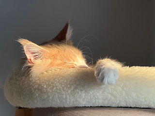 Mein Start mit Peter war etwas holprig. Ich will ja auch mal so ein großer Kater wie Peter werden. Daher bin ich ihm in den ersten 10 Minuten direkt auf die Pelle gerückt. Fand er nicht gut. Er hat mich dann angefaucht und mir eine gewischt. Danach war ich für die nächsten Stunden auf dem Klo und hab mich vor ihm versteckt. Mittlerweile habe ich mich bei ihm entschuldigt und wir sind dicke Freunde. Nur beim Thema Essen nicht. Da habe ich Vorrang. Ich will ja noch wachsen und so groß und stark werden wie er.